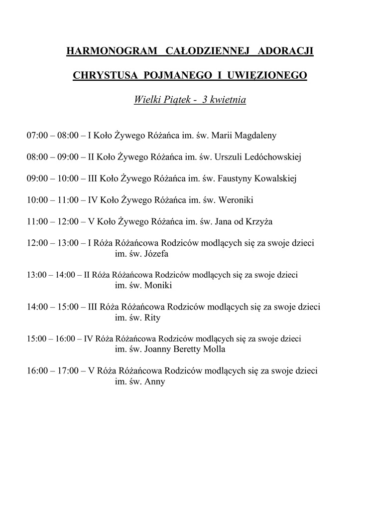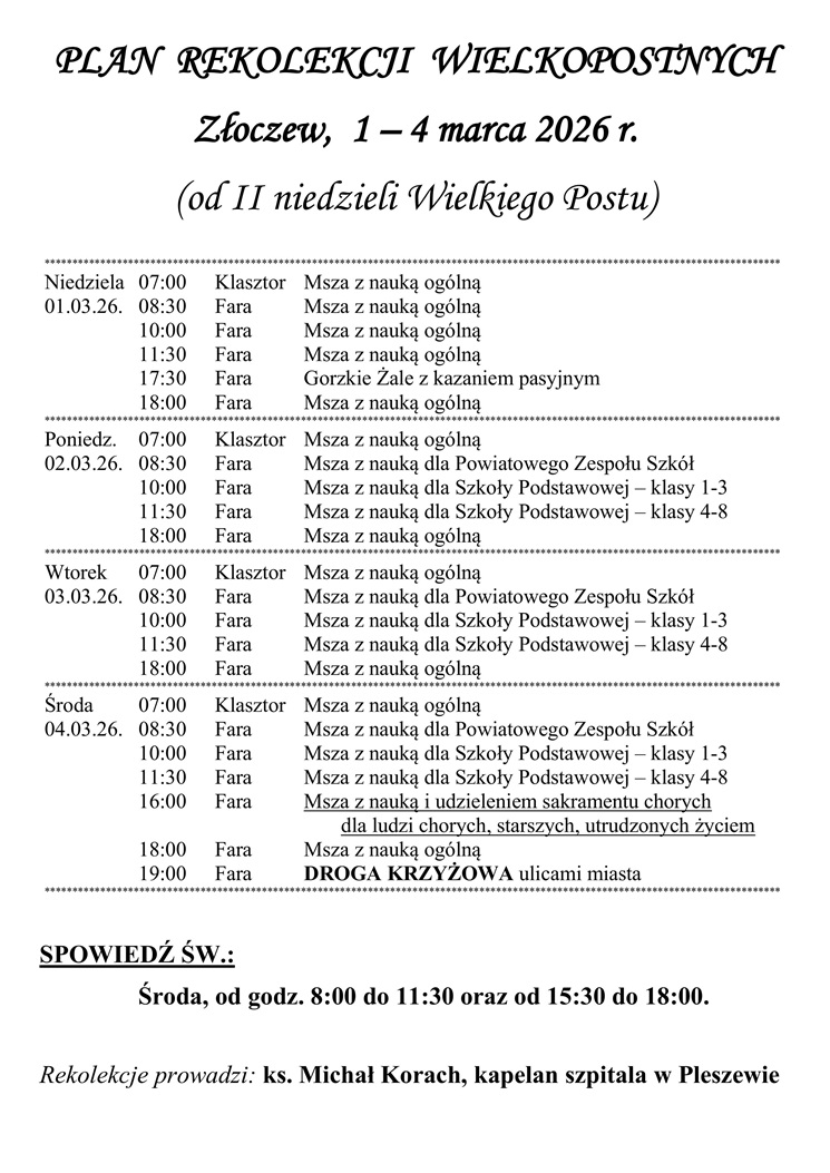 godz.7:00, 8:30, 10:00, 11:30, 18:00